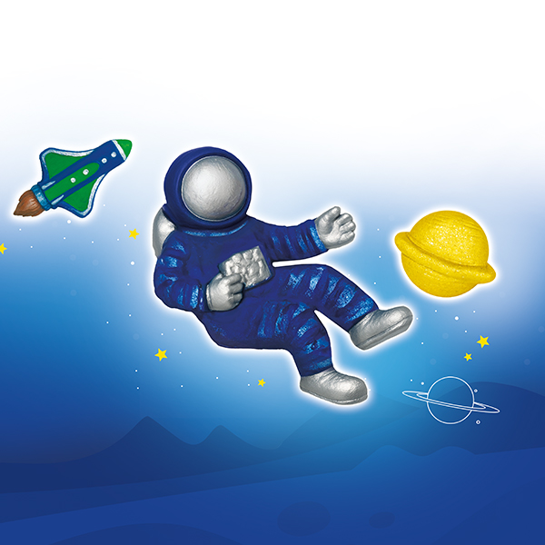 Un kit créatif qui s’inspire du concept d’edutainment : la parfaite combinaison entre éducation et divertissement. Avec de la pâte à modeler, des gouaches, un pinceau et un moule en silicone, ce kit offre un ensemble soigneusement conçu pour accompagner les jeunes artistes dans l’exploration de différentes techniques et matériaux. Le livret créatif inclus guide pas à pas les plus petits dans la réalisation de créations fantastiques. En plus des instructions détaillées, il propose des astuces pour expérimenter et développer leur propre sens artistique. Grâce à ses différentes composantes, ce kit permet aux enfants de suivre tout le processus de création d’un objet, de la modélisation avec la pâte Mod à la peinture à la gouache. Le Kit Galaxy est centré sur le thème de l’espace : des étoiles scintillantes, des planètes lointaines et des galaxies encore inexplorées qui fascinent petits et grands depuis toujours. Les enfants peuvent ainsi donner forme à leur imagination en recréant des scènes spatiales et en voyageant parmi les étoiles et les planètes grâce à leur créativité. Le moule en silicone inclus permet de réaliser facilement trois sujets liés à l’univers spatial, en utilisant la pâte à modeler Mod. Cette pâte est auto-durcissante, prête à l’emploi, testée dermatologiquement et composée à plus de 90 % de substances naturelles. Elle sèche à l’air libre et ne nécessite aucune cuisson.