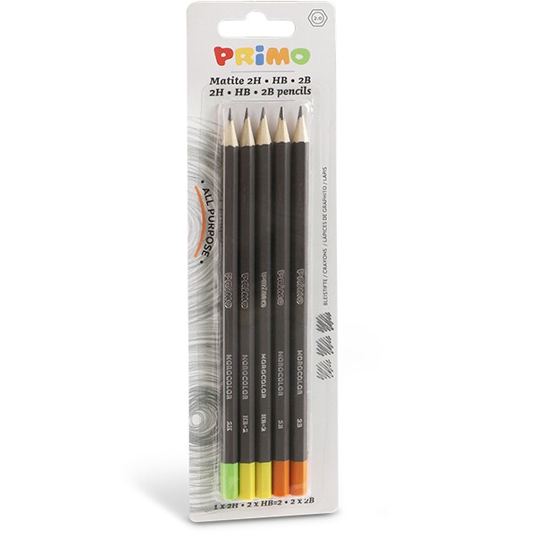 Matite grafite laccate, in blister da 5 pezzi, 3 gradazioni (2H – HB – 2B).